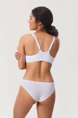 Sleek and simple, this seamless cotton bra ensures a smooth outline under any top. The breathable natural fibres feel kind on the skin, while the adjustable straps and supportive back closure provide comfort you can count on. Minimalist design with maximum practicality for everyday use.