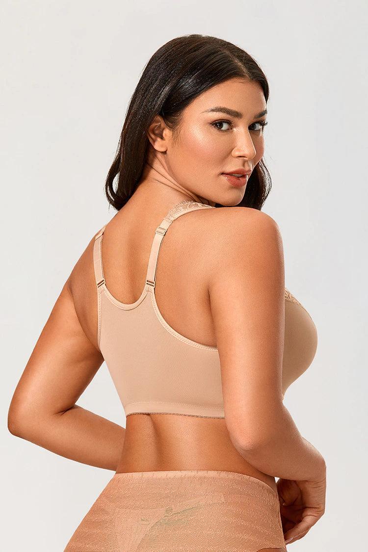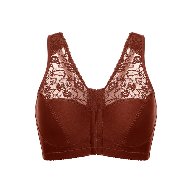 Our front closure bras plus size collection delivers easy-on support with a smooth, full coverage fit. Enjoy wirefree or underwire options, wide adjustable straps, and molded cups that shape comfortably for everyday wear from B to F cups.