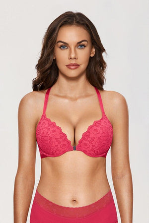 Lace Plus Size Pink Bra for Flattering Lift & Front-Closure Ease