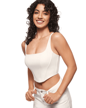 This non wired padded plunge bra-inspired corset top smooths your curves with a longline, bustier fit and sleek, seamless finish. Lightly molded cups and a secure back zip create a flattering shape that works from nights out to layered looks.