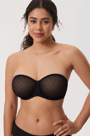 This strapless seamless bra lifts and smooths with molded demi cups and delicate textured lace. Underwired support and a clean balconette neckline disappear under outfits, while optional convertible straps let you switch from classic to strapless in seconds.