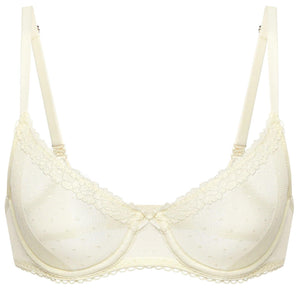 - Semi-sheer mesh and scalloped lace detailing frame the cups for a lace demi cup bra look that still layers smoothly.