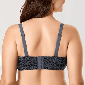 Meet the full cup padded underwired bras that finally stay put strapless, wrapping your curves in smooth, full coverage. Molded leopard-print cups, firm underwire and a wide band work together to lift, shape and support from B to G cups.