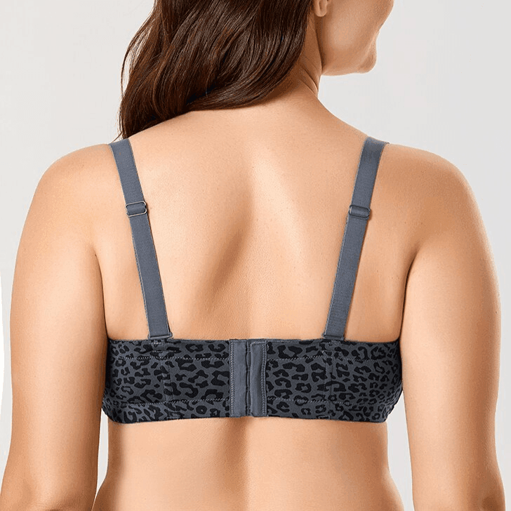 - Available from 34–44 bands and B–G cups, offering plus-size friendly support and versatile styling in bold leopard prints