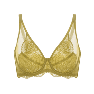 This green plus size bra blends minimiser shaping with feminine lace, giving full-cup coverage that still feels light and flattering. Underwired cups and adjustable straps offer confident support in every color, from bold chartreuse to classic black and nude.